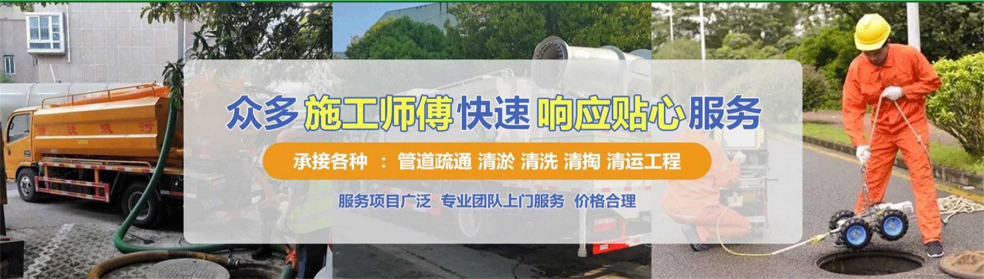 承接各地 市政污水,雨水管道清淤检测,CCTV机器人检测,QV潜望镜检测,非开挖管道修复,管道安装维修顶管,短管置换,蛙人潜水打捞,气囊封堵涵洞清淤,清理化粪池,污水池,气体检测 ,基坑清理,泥浆转运,污泥转运污水处理厂,污水站水泵更换,发电机出租,大小工厂,学校,大小食堂单位等等服务。